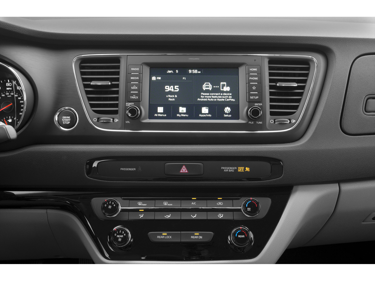 - Radio: AM/FM/MP3 Audio System -inc: 6 speakers, 7.0" Rear View Monitor w/Parking Guidance (RVM w/PG), support for Android Auto and Apple CarPlay, SiriusXM, UVO eServices, Bluetooth® wireless technology and USB/auxiliary input jacks